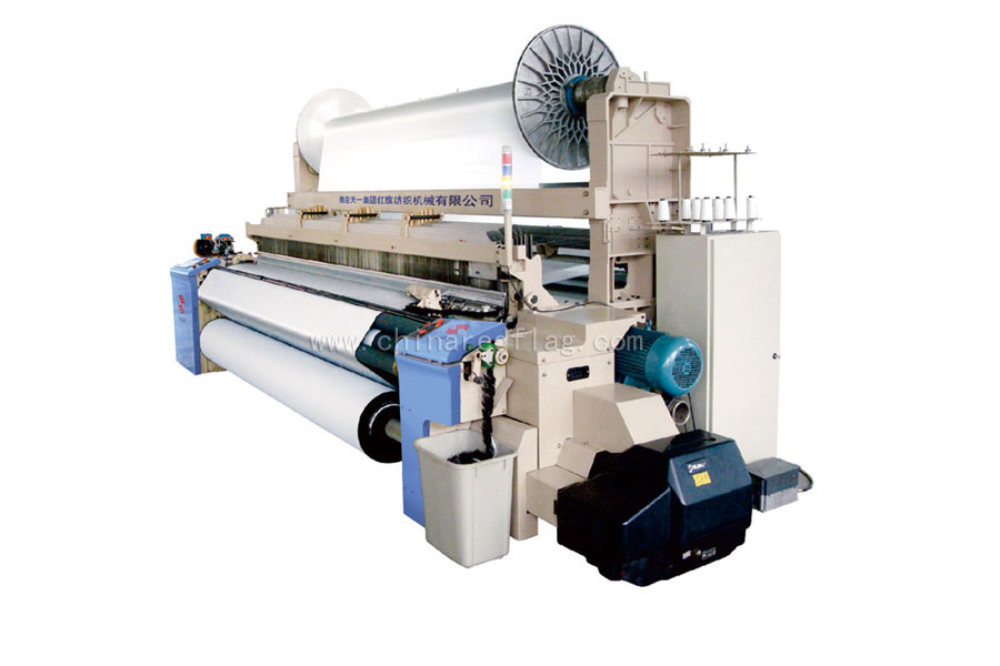 我司新研發的JA92上下雙重織軸高檔寬幅噴氣織機是針對紡織企業開發高附加值雙面織物、色織物研發而成,該產品具有筘幅寬、轉速高、織物范圍廣、品種適應性強(可應用于棉、毛、絲、麻、化纖等各個紡織行業)、織造效率高、自動化程度高、性能穩定可靠等特點,為紡織企業解決了開發高附加值雙面織物時遇到的漿紗和織造的難題,是紡織企業開發高檔織物產品(高檔單面亮光雙面滌彈絲遮光布、高檔家紡布、色織布)提高產品質量、降低勞動成本、減少環境污染、提高經濟效益的設備。性能指標:公稱筘幅為190-360cm(可根據用戶需求生產相應的筘幅),上、下織軸盤片直徑φ800mm(或φ914mm)、主軸轉速400-750rpm(實際車速根據織物規格確定)、筘幅可調范圍0-800mm、適用織造長絲或短纖、卷布直徑550mm、上下織軸經紗雙伺服控制、電子多臂開口(16片)、電子卷取(機械卷取)、10.4〞觸摸液晶顯示智能電腦控制 。